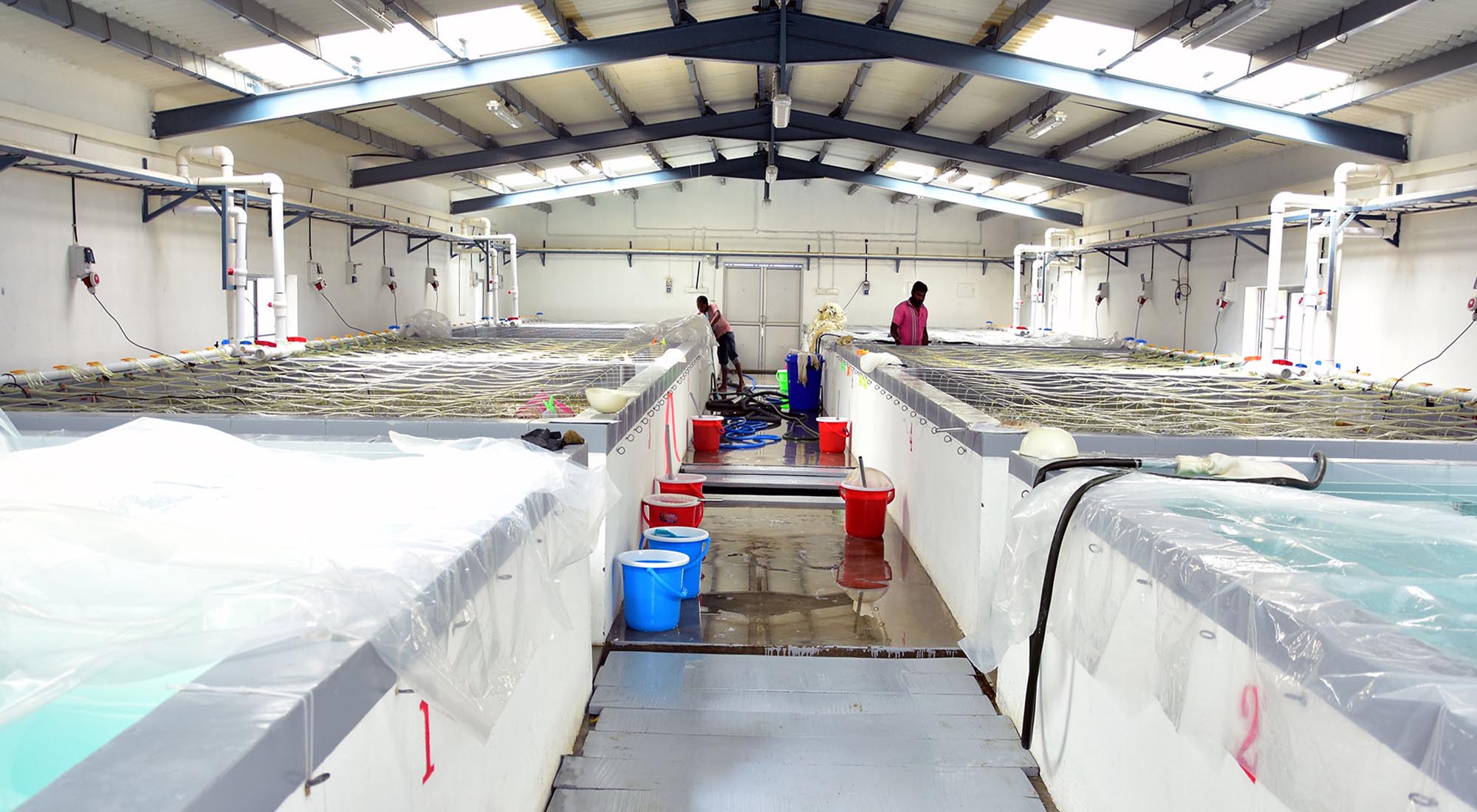Construction of Shrimp Hatchery Factory includes Civil, Plumbing & electrical works for Sea Water resevoir, Fresh water reservoir, Maturation Tanks, Larval rearing Tanks, Indoor & Outdoor Algal, Artemia, Worksop, Stores, transformer, Packing & Delivery, cateen cum staff accomodation, office, ETP, Security room, septic tank, wheel dip, toilets, slow sand filter and car parking.