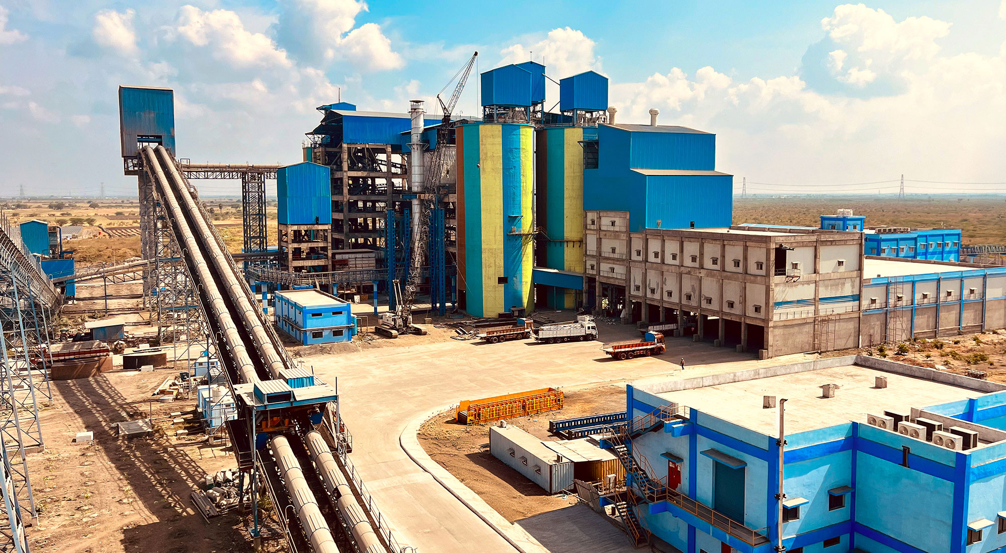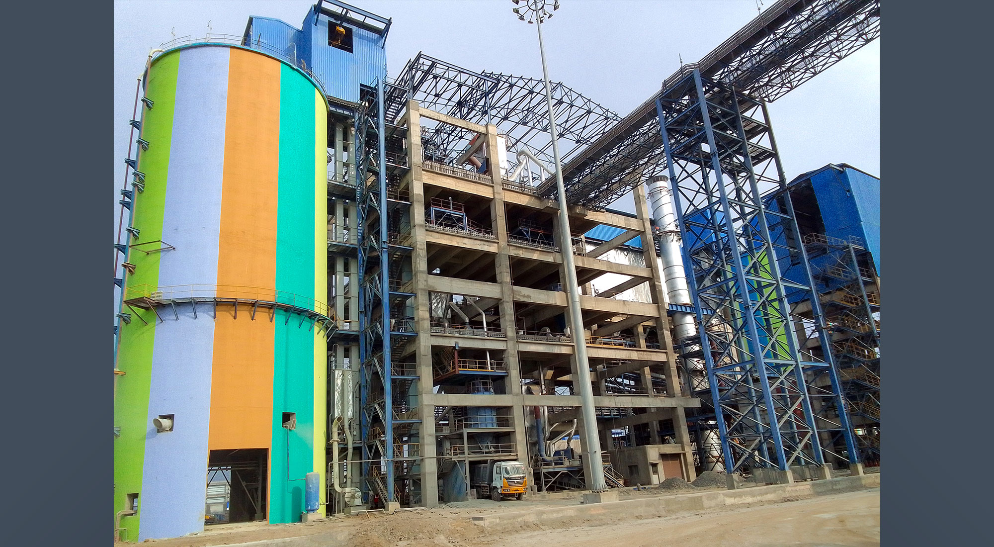 Construction of Cement Plant (Grinding Unit) Civil & Structural Work for Area Development, Cement Mill Hoppers, Cement Mill, Cement Mill Baghouse, Stock Pile Shed, Packing Plant & Truck Loading, FBC, Coal Crusher, Belt Conveyors & Cable Galleries, Box Feeder & Truck Tippler, Wagon Tippler, Central Control Room Building, Workshop & Store, Water Treatment Plant, Roads Work, Drains, Plant Flooring, and Truck Parking